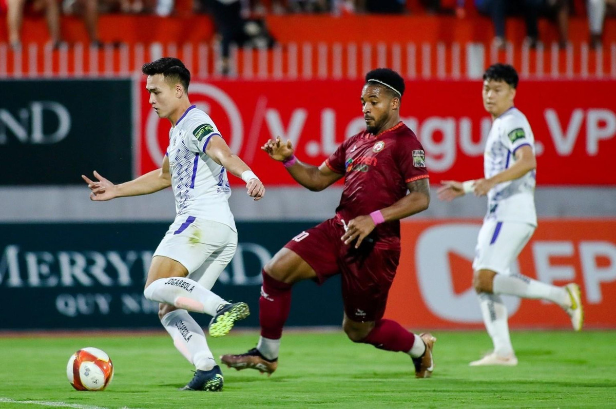 Hà Nội có bàn gỡ ngay đầu hiệp hai nhờ công của Lucao. (Ảnh: CLB Topenland Bình Định)