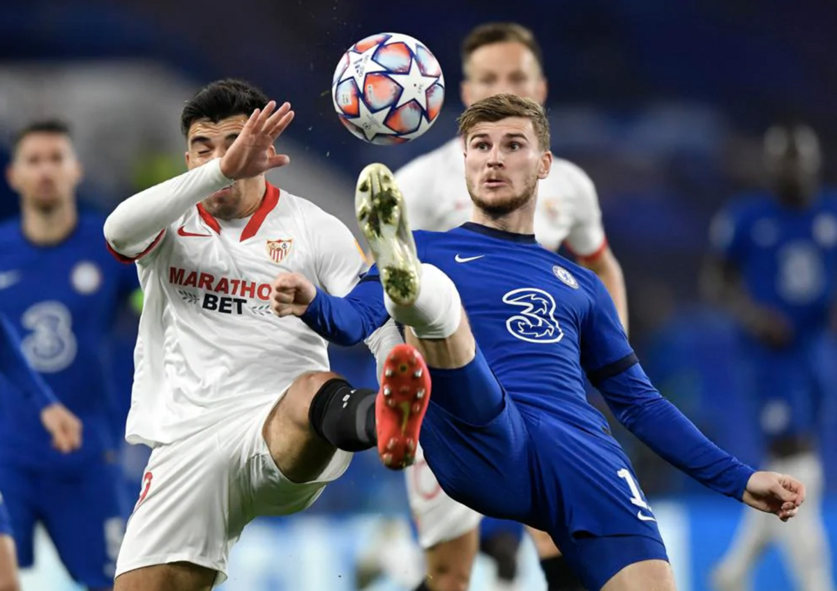 Kai Havertz cùng đồng đội nhường thế trận cho Sevilla. Chelsea hầu như chỉ đuổi bóng trong khoảng thời gian đầu trận và suýt phải trả giá. Phút 18, từ tình huống lộn xộn trước vòng cấm Chelsea, Luuk De Jong đánh đầu nguy hiểm nhưng thủ môn Edouard Mendy đã cản phá thành công.