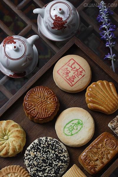 Bánh trung thu ở đây cực kỳ đa dạng về kiểu dáng, mùi vị, từng vùng miền, từng khu vực. Trên bề mặt bánh thường in các ký tự với ý nghĩa tốt lành. Ngoài ra tết trung thu tại trung quốc còn một số vật mang ý nghĩa may mắn, tốt lành nữa, như cua bò ánh trăng, ăn bí ngô vào ngày này, đốt đèn lồng, rước đèn, đốt tháp…