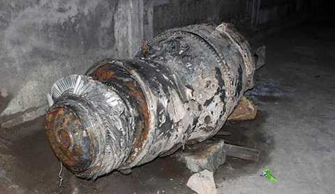 | Vật thể nghi là đuôi máy bay có chiều dài khoảng 2,5m, đường kính rộng nhất khoảng 1,3m, và trọng lượng trên 1,5 tấn. |