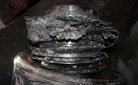 | “Phần đuôi” của khối sắt thép khổng lồ, nhiều lá thép đã bị cong vênh, biến dạng. |