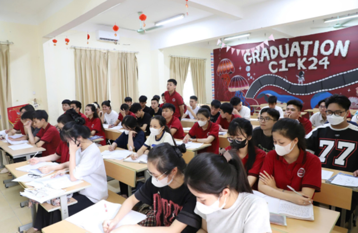Học sinh lớp 12C2 đang ôn tập chuẩn bị thi tốt nghiệp năm 2025