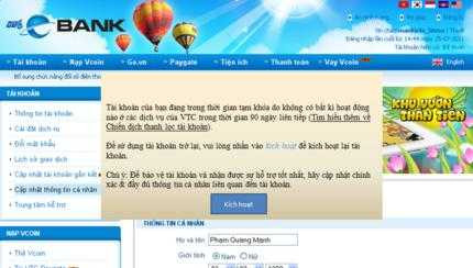 Đối với các tài khoản inactive trong vòng 3 tháng, không có phát sinh giao dịch Vcoin: 01 tháng (30 ngày) tiếp theo – đến 00h ngày 01/10/2011 , tài khoản cần được reactive để kích hoạt lại tài khoản và di chuyển khỏi danh sách “Tạm khóa”. Nếu account không thực hiện lệnh kích hoạt (lệnh kích hoạt được thông báo trực tiếp trên các website sử dụng tài khoản VTC eBank để đăng nhập) thì tài khoản đó sẽ bị xóa hoàn toàn khỏi hệ thống VTC eBank và các dịch vụ Game.