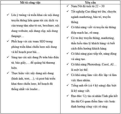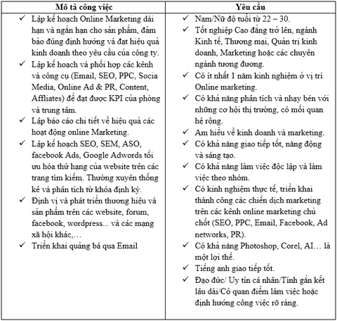 Mô tả công việc và yêu cầu công việc bạn xem tại đây nhé. Cực hay và hấp dẫn đấy. Xem ngay