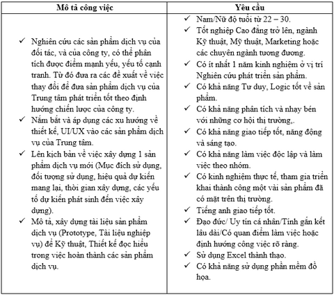 3. Vị trí: Nhân viên Nghiên cứu và phát triển sản phẩm