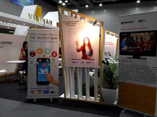 Tại đây, khu triển lãm của Việt Nam và đặc biệt là gian hàng của VTC thật sự nổi bật bởi những hình ảnh vô cùng đẹp mắt và hiện đại, thể hiện thế mạnh về công nghệ thanh toán điện tử trên website và mobile hiện đang dẫn đầu tại thị trường Việt Nam.