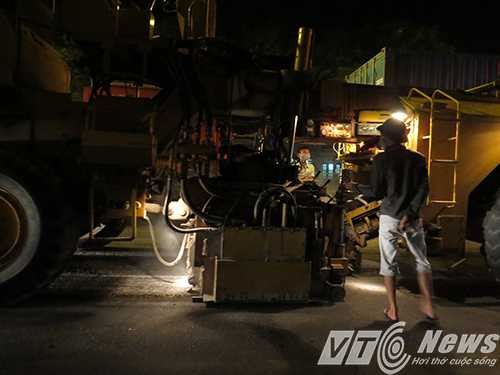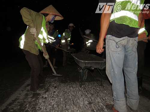 Do mật độ phương tiện qua đoạn đường này khá đông nên đơn vị thi công chỉ thực hiện sửa chữa vào ban đêm, cộng với gặp ảnh hưởng của cơn bão số 1 nên tiến độ sửa chữa có chậm hơn so với dự kiến.