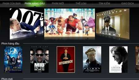 Giao diện quản lý video theo yêu cầu với tông màu và hiệu ứng đẹp, thuận tiện cho việc sử dụng bằng điều khiển từ xa trên màn hình lớn, trải nghiệm người dùng tốt cho phép khán giả tìm kiếm, xem thông tin chi tiết, xem thử, thuê phim và quản lý lịch sử giao dịch cũng như tài khoản đã nạp.