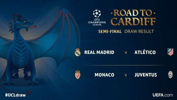 Vòng bán kết cúp C1 châu Âu sẽ diễn ra vào đầu tháng 5 với hai cặp đấu là: Real Madrid vs Atletico Madrid và Monaco vs Juventus. Các trận lượt đi sẽ diễn ra vào thứ Ba (2/5/2017) và thứ Tư (3/5/2017). Các trận lượt về sẽ diễn ra một tuần sau đó vào thứ Ba (9/5/2017) và Tư (10/5/2017).