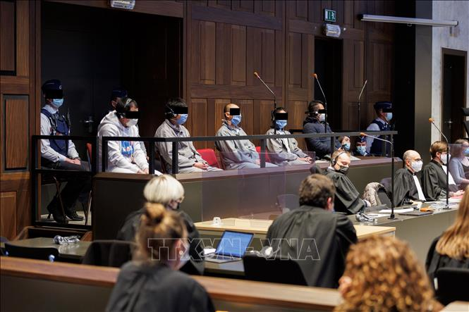Phiên tòa xét xử các nghi phạm liên quan đường dây buôn người tại thành phố Bruges, Bỉ, ngày 15/12/2021. (Ảnh: TTXVN)