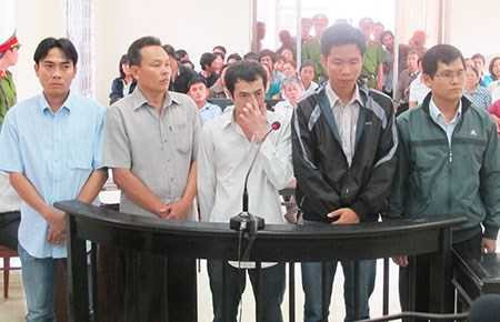 Tại phiên tòa diễn ra từ ngày 26-3 đến 3-4, TAND TP Tuy Hòa đã áp dụng khoản 3 Điều 298 BLHS phạt Nguyễn Thân Thảo Thành (nguyên thiếu úy Công an TP Tuy Hòa) năm năm tù; áp dụng khoản 1 Điều 298 BLHS phạt Nguyễn Minh Quyền (nguyên thiếu tá, đội phó Đội trinh sát Phòng CSĐT tội phạm về TTXH Công an tỉnh Phú Yên) hai năm tù, Phạm Ngọc Mẫn (nguyên thượng úy Công an TP Tuy Hòa) 18 tháng tù, Nguyễn Tấn Quang (nguyên thiếu tá Công an TP Tuy Hòa) 15 tháng tù treo, Đỗ Như Huy (nguyên trung úy Công an TP Tuy Hòa) 12 tháng tù treo.