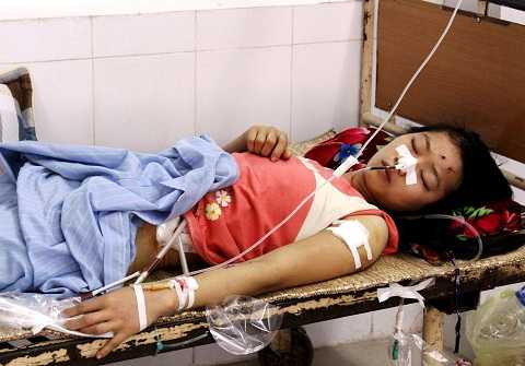 | Chị Chung đang nằm điều trị tại bệnh viện |