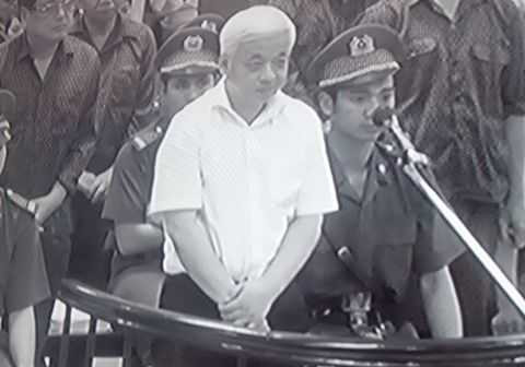 | Bị cáo Nguyễn Đức Kiên trước tòa. (Ảnh chụp qua màn hình). |