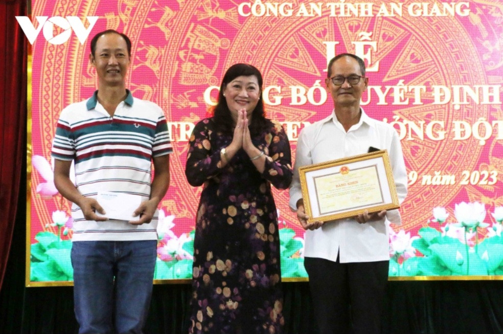 Thưởng nóng Phòng Cảnh sát hình sự Công an tỉnh An Giang và Công an Thành phố Long Xuyên, mỗi đơn vị 10 triệu đồng.
