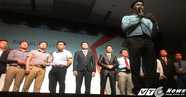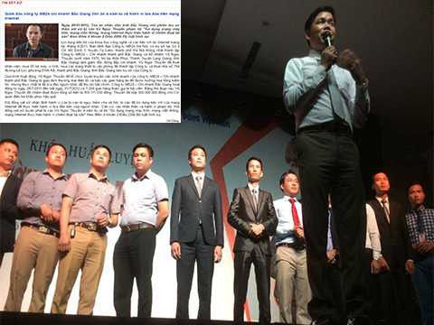 | Ông Vũ Ngọc Thuyển (hàng trên, người cầm micro) bị TAND tỉnh Bắc Giang kết án 4 năm tù nhưng vẫn có tên trong nhóm cổ đông sáng lập Công ty Cổ phần Liên minh tiêu dùng Việt Nam. |