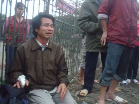 Ông Hà đau đớn bên xác người con được công an xác nhận là chết về bệnh lý. Ảnh: Bee.