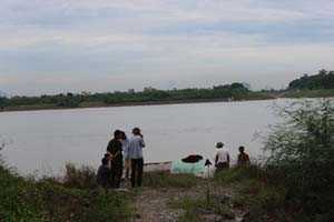 | Hai thợ lặn sau một hồi lặn mò, lặn bằng máy trong vòng bán kính 100m khu vực phát hiện ra thi thể chị Huyền, đều không có kết quả. |
