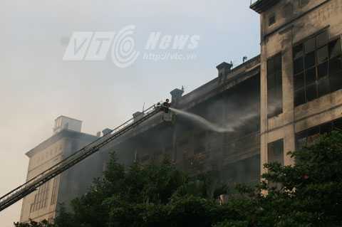 Bà Loan cho biết, khoảng 2h30, bà nhận được tin báo có cháy, khoảng gần 4 giờ khi ra đến nơi đã thấy lửa cháy bùng bùng, phun ra từ TTTM. Có 2 xe cứu hỏa đang phun nước nhưng chỉ thấy phun vào cửa kính mà không thể phun vào bên trong.