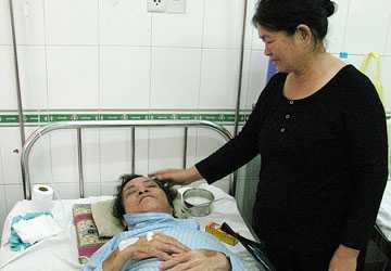 Ông Phan Phụng đang tai biến liệt nửa người bị Tiến chém gây thương tích nặng. Ảnh: PN |