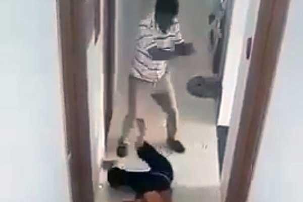 Hình ảnh ông Xuân đánh đập dã man người phụ nữ được camera ghi lại. (Ảnh: Chụp màn hình)