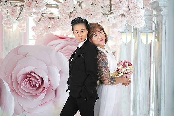 'Khánh bảo khéo em làm chú rể hợp hơn đấy, xong Tiên bảo ok vậy em mặc vest, anh bận đầm đi thế là từ câu nói vui ấy của Tiên, Khánh nảy ra ý tưởng chụp những hình ảnh này luôn. Hi vọng mọi người không ghen tỵ vì độ xinh gái quá mức của mình cũng như sự đẹp trai của vợ (Cười).'