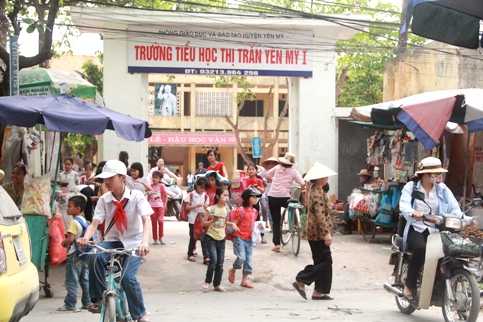 | Học sinh trường tiểu học thị trấn Yên Mỹ 1 đi học bình thường sau sự việc (Ảnh: Phạm Thịnh) |