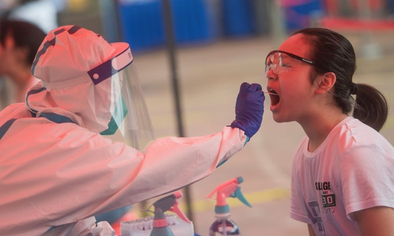 Một học sinh xét nghiệm COVID-19 tại một trường học ở Vũ Hán. (Ảnh: Hoàn cầu Thời báo)