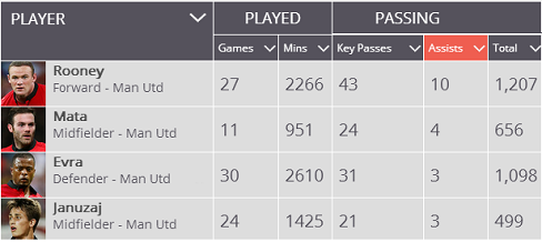 Thật vậy, các con số thông kê chỉ ra rằng Adnan Januzaj đã có một mùa giải thực sự ấn tượng trong màu áo CLB thành Manchester. Tiền vệ 19 tuổi của Man Utd đã thi đấu tổng cộng 1425 phút (24 lần ra sân) tại Premier League, ghi được 3 bàn thắng và 3 lần kiến tạo giúp đồng đội lập công. Thành tích này chỉ thua kém Wayne Rooney và Juan Mata, những cầu thủ đã tạo ra lần lượt 10 và 4 pha kiến tạo kể từ đầu mùa.