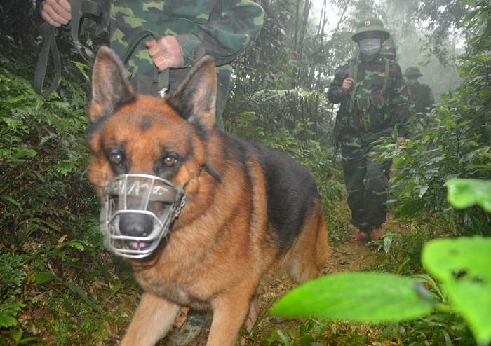 Hình ảnh lực lượng biên phòng Hà Tĩnh dắt chó nghiệp vụ tuần tra khu vực biên giới Việt-Lào: