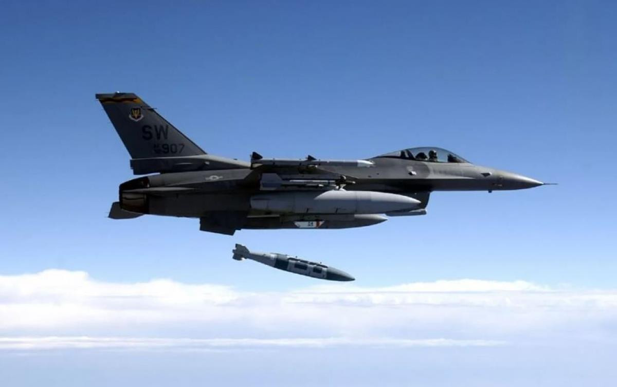 Một tiêm kích F-16CJ của Mỹ đang thả bom JDAM trong cuộc thử nghiệm năm 2003. Loại bom này đã được cung cấp cho Ukraine giữa bối cảnh Kiev đang đối mặt với bom lượn của Nga. (Ảnh: Getty)