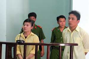 | Bị cáo Huyền và Thành tại phiên tòa |