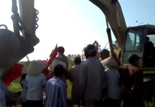 | Một người dân được cho là bị máy xúc của đơn vị thi công chèn lên người - Ảnh cắt từ clip |