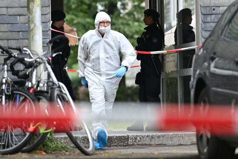 Một nhân viên pháp y bên ngoài căn hộ chưng cư ở Solingen. (Ảnh: EPA-EFE)