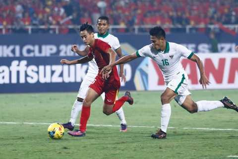 Chỉ hai động tác, Vũ Minh Tuấn đã loại 3 cầu thủ Indonesia trước bàn thắng lịch sử này. Ảnh: Thanh Hà