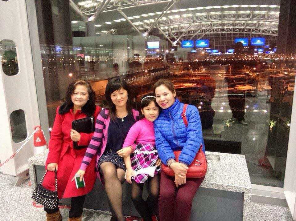 | Bà Hạnh (ngoài cùng bên trái), chị Vân cùng con và chị Trang trong một lần sang Anh thăm mẹ. |