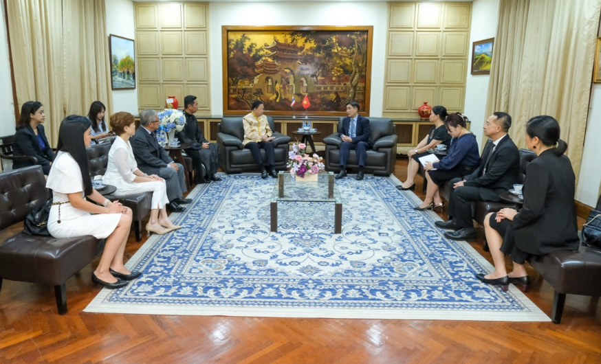 Đại sứ Việt Nam tại Thái Lan Phạm Việt Hùng tiếp Chủ tịch Hội Hữu nghị Thái - Việt kiêm Chủ tịch Phòng Thương mại Thái Lan Sanan Angubolkul.