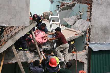 Ngay sau vụ nổ, người dân đã đến cứu và đưa được 2 vợ chồng chủ nhà ra khỏi đống đổ nát đi bệnh viện cấp cứu. Nhiều người vẫn còn nghe thấy tiếng khóc của 2 cháu bé con chủ nhà nằm trên tầng 2 bị đống bê tông đè lên người nhưng vẫn chưa thể cứu giúp. Đến thời điểm này, nhiều người đã không thể nghe thấy tiếng khóc của hai cháu bé nữa.