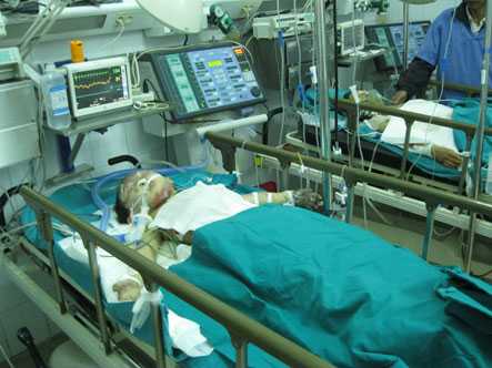 “Tôi vào thăm cháu mà không cầm nổi được nước mắt. Toàn thân được quấn băng trắng xóa, mặt mũi, chân tay phù nề biến dạng không thể nhận ra. Trước đó, các bác sĩ đã tiến hành cắt cụt từ cổ chân đến bàn chân bên trái của cháu, nhưng do vết thương dập nát quá nhiều, không giữ được, nên hôm qua các bác sỹ tiến hành tháo nốt khớp cẳng chân trái.