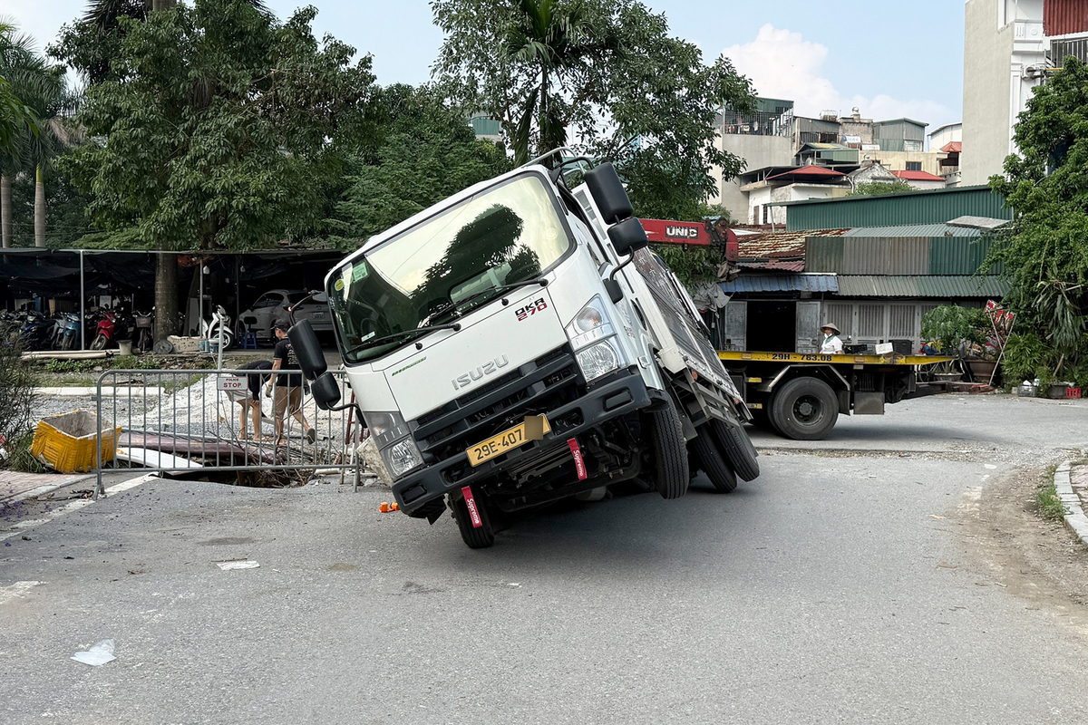 Vào khoảng 13h ngày 9/10, một xe tải đi vào đoạn đường có hố sụt, sát khu vực đang được cảnh báo, và bị sụt bánh sau. Ngay sau đó, xe cứu hộ tới hiện trường để kéo xe lên nhưng cũng bị sụt bánh. Đến 15h cùng ngày, sau khi được cứu hộ, các xe đã được di chuyển ra khỏi khu vực xảy ra sự cố.