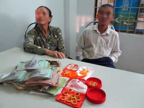 Vợ chồng bà Ưa và số tài sản bị khai báo là bị trộm tại cơ quan Công an.