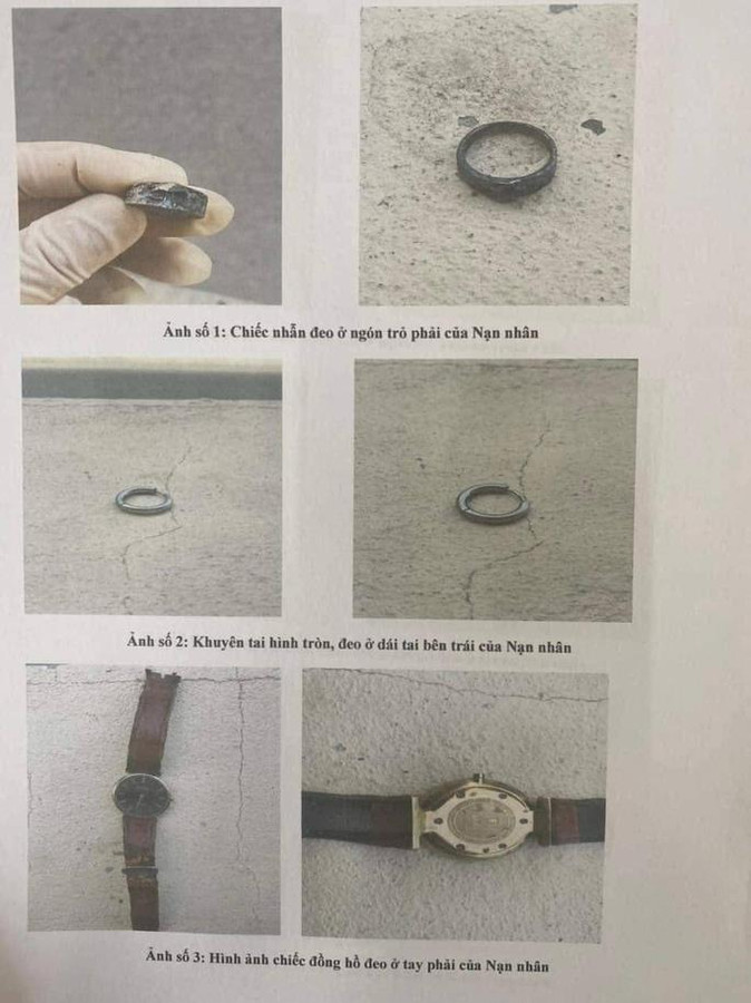 Một số hình ảnh vật dụng phát hiện trên thi thể.