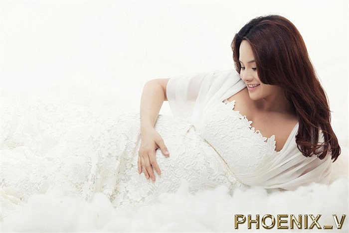 Mang thai ở những tháng cuối cùng, siêu mẫu Vũ Thu Phương khoe vẻ đẹp viên mãn trong chiếc đầm màu trắng và màu nuy thuần khiết.