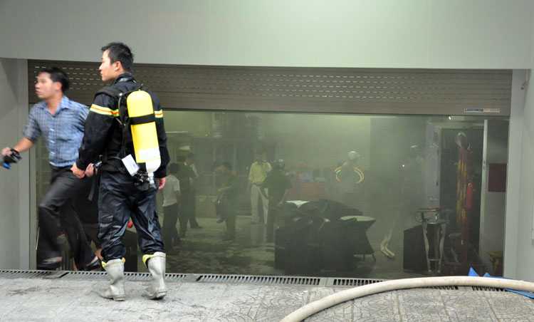 Hàng chục người tháo chạy ra ngoài điện thoại báo cảnh sát PCCC. Một số người bị nôn thốc do sốc khói. Ngay sau đó, khói đen khét nẹt từ bên trong bốc ra.
