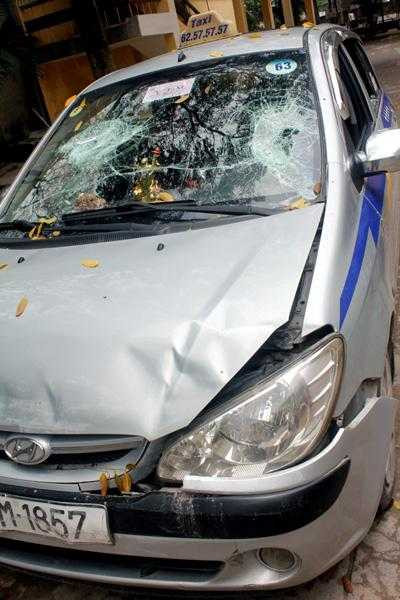 | Chiếc xe taxi chở cô gái bị bắn chết trong vụ truy sát. |