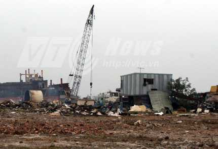| Các loại phế thải nguy hại, thiết bị tàu đang được phân loại, đánh đống trên bờ - Ảnh Minh Khang |