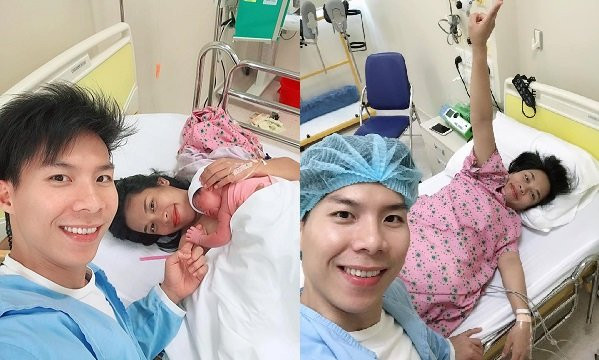 Quốc Nghiệp ở bên vợ, chăm sóc cho cô trước khi lâm bồn.