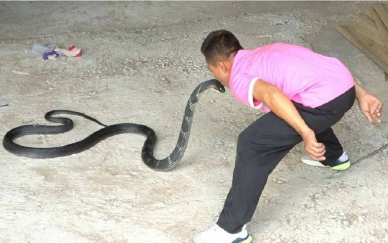 Vua rắn Thongkum Chaibuddee và màn hôn rắn hổ mang khiến nhiều người khiếp sợ.