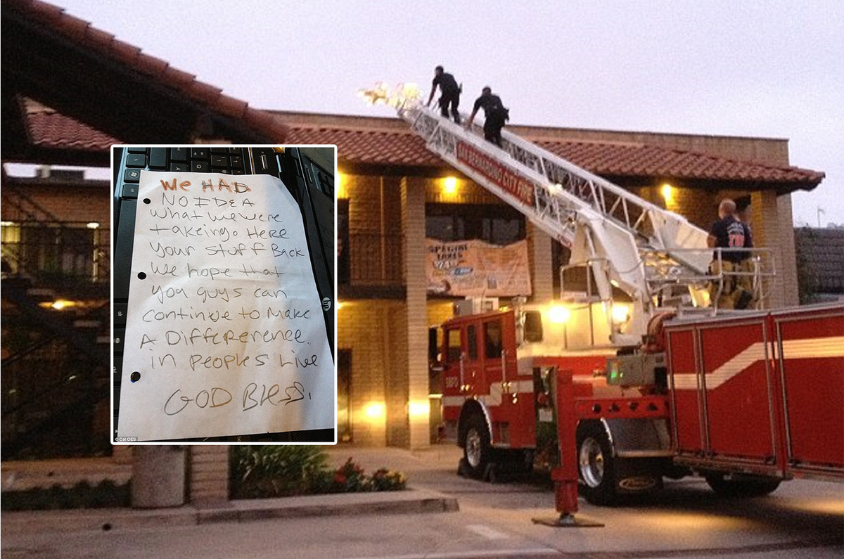 "Chúng tôi thật sự không biết mình đã lấy đi điều gì. Đây là toàn bộ các món đồ của các bạn, chúng tôi hy vọng rằng các bạn có thể tiếp tục tạo ra sự khác biệt trong cuộc sống của mọi người. Chúa phù hộ các bạn", nội dung lời nhắn được viết trên mẩu giấy.