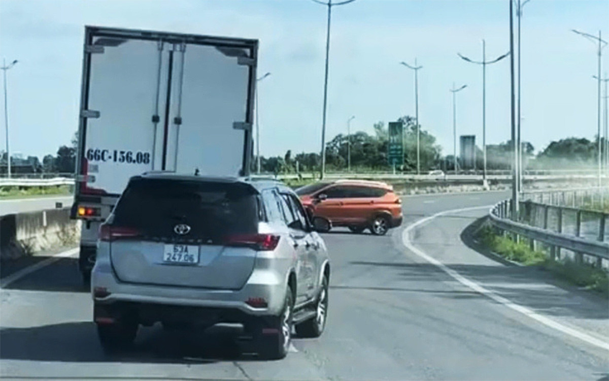 Cảnh ô tô con quay đầu, chạy ngược chiều trên cao tốc TP.HCM - Trung Lương trong clip gây bức xúc trên mạng xã hội tháng 8/2024.