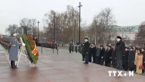 Tiếp tục chuyến thăm chính thức Liên bang Nga, ngày 24/11, Tổng Bí thư Nguyễn Phú Trọng và đoàn đại biểu cấp cao Việt Nam đã đến đặt vòng hoa tại Đài tưởng niệm các chiến sỹ vô danh trên Quảng trường Đỏ, nghiêng mình tưởng nhớ các anh hùng, liệt sỹ đã dũng cảm chiến đấu, hy sinh vì độc lập tự do của Tổ quốc.